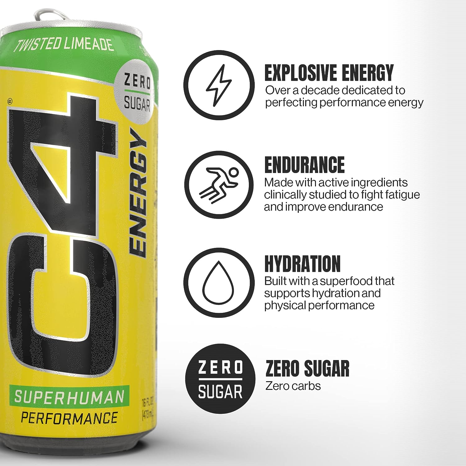 C4 Original Carbonated tastes amazing and contains zero sugar, zero calories, and zero total carbs.