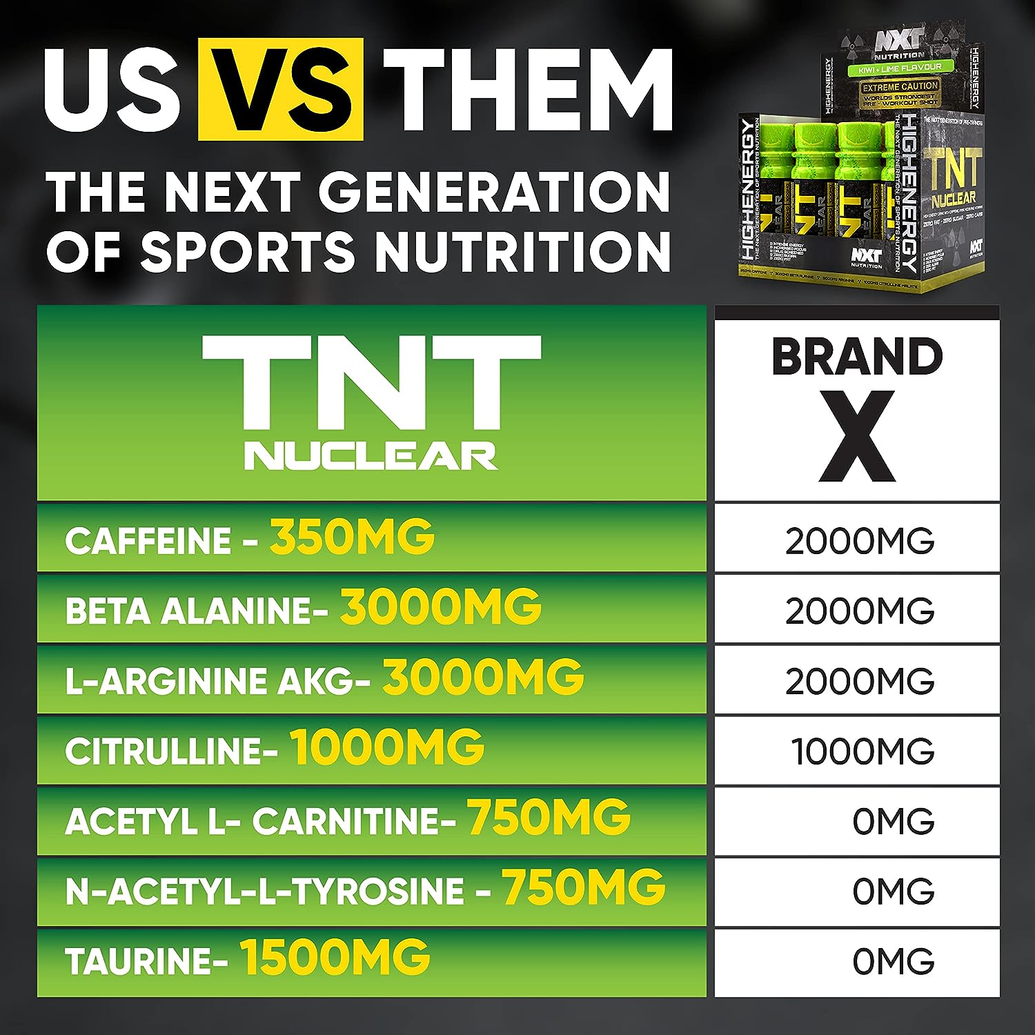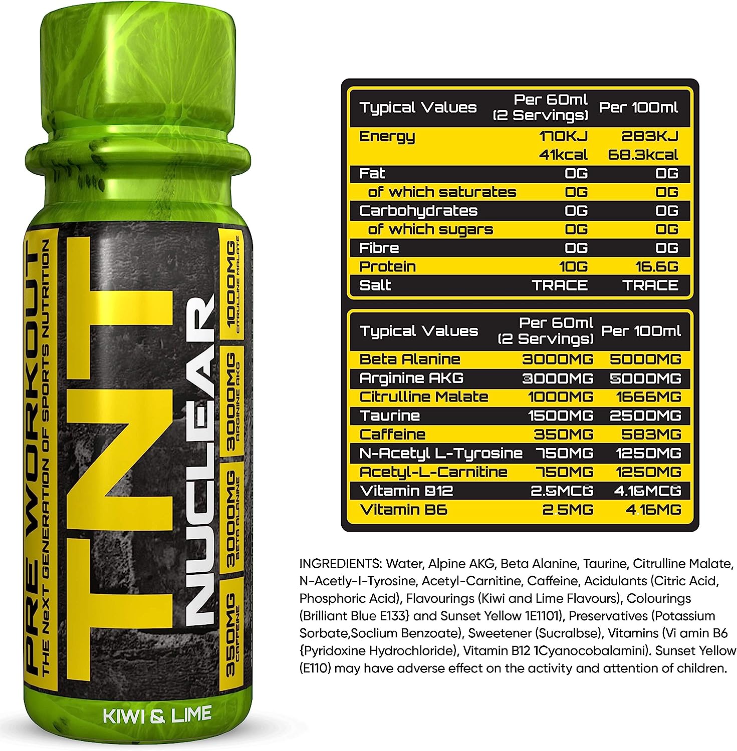 WORLD'S STRONGEST ENERGY SHOTS -TNT PRE WORKOUT SHOT is the UKs most powerful on the go energy product a perfect pre work out in a convenient 60ml single serving bottle. Forget messy hard to mix powders, just twist the cap, drink and go!